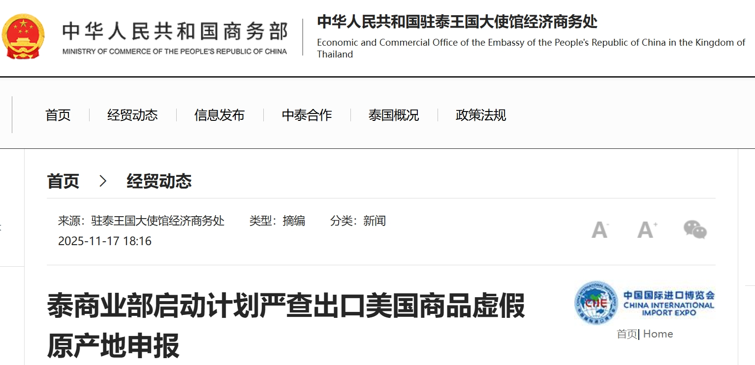 对于出口商品原产地造假破坏贸易秩序行为,泰国在11月宣布虚假原产地申报打击计划并制定原产地认证新规