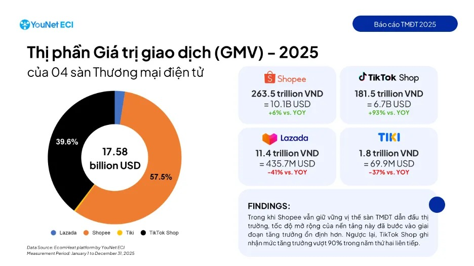 据YouNet ECI数据,2025年越南四大电商平台(Shopee、TikTok Shop、Tiki、Lazada)总交易额达458.16万亿越南盾,同比增长26%,显著高于全国零售业9.2%的整体增速;同时吗,在NielsenIQ的一项调查发现,高达84%的用户担心产品与广告宣传不符,产品质量正逐渐成为消费者选择的第一要义